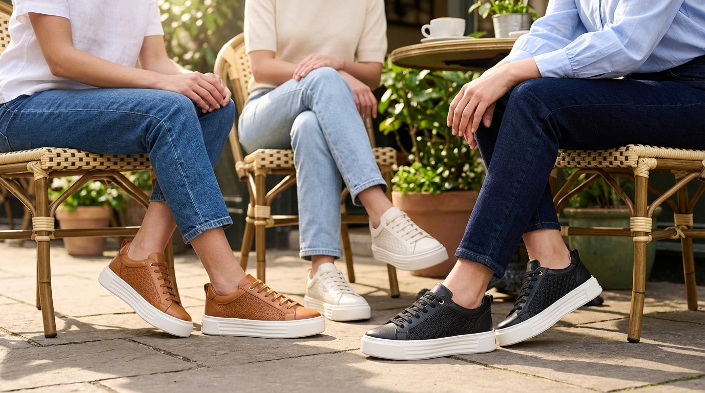 Effortlessly stylish and endlessly wearable, Teal is the casual trainer that belongs in every summer waredrobe. Crafted in soft leather with perforated detailing and set on a chunky white sold, it strikes the perfect balance between laid-back and luxe. The 'E' width fit, cushioned footbed and leather sock bring comfort without compromise. Pair with linen, denim or you favourite summer dress.