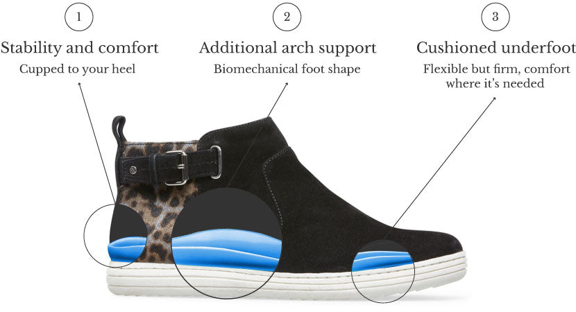 Biomechanically designed to stabilise and hug the foot, our Wellness footbeds also provide extra arch support.