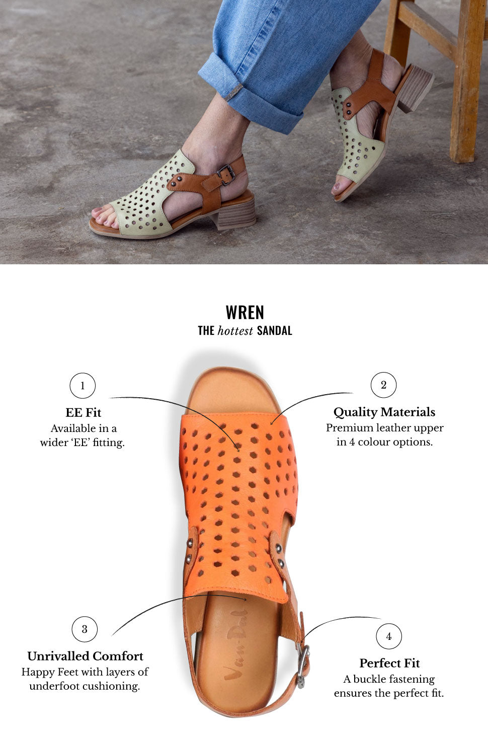 Wren is an effortlessly stylish sandal designed with comfort in mind. Crafted in soft premium leather and available in an extra-wide EE fit, Wren sits on a lightweight and flexible block heel for day-long support.